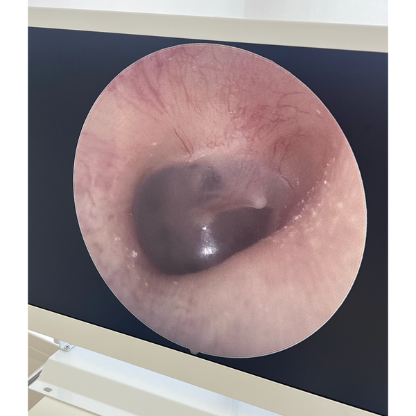The wax is covering 100% of the eardrum (TM).
